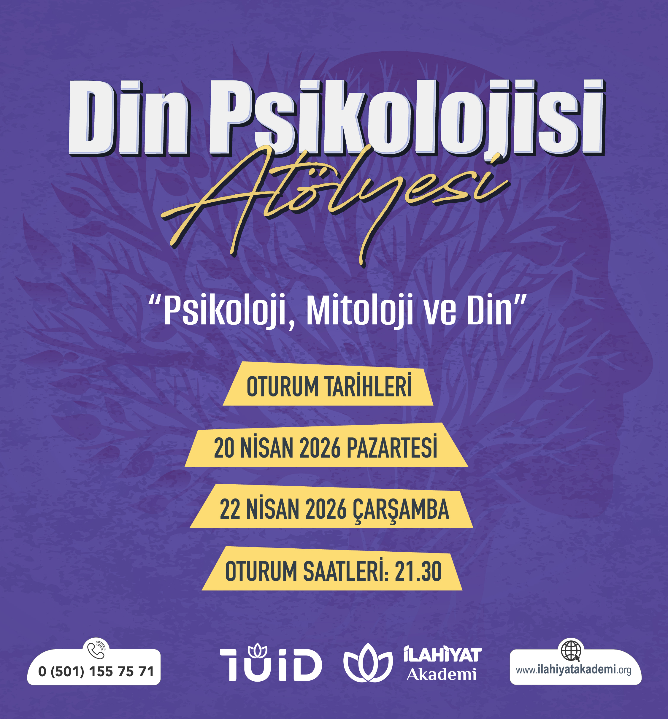 🌿 Din Psikolojisi Atölyesi "Psikoloji, Mitoloji ve Din" eğitimi başlıyor! İnsan, varoluşundan bu yana anlam arayışını; inanç, sembol ve anlatılar üzerinden şekillendirmiştir. Bu atölye; psikolojinin insan ruhuna dair sunduğu içgörüleri, mitolojinin kadim hikâyelerini ve dinin anlam dünyasını bir araya getirerek bütüncül bir perspektif sunmayı amaçlamaktadır.